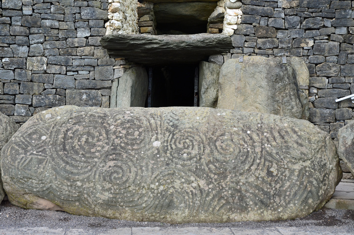 There is not complete agreement about what the site was used for but it is believed that it had religious significance. Its entrance is aligned with the rising sun on the winter solstice when sunlight shines through a “roofbox” and floods the inner chamber for a few minutes. In this respect, Newgrange also shares many similarities with other Neolithic constructions in Europe, especially Gavrinis in Brittany in France, Maeshowe in Orkney in Scotland and Bryn Celli Ddu in Wales.