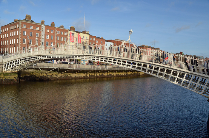 Ha’penny Bridge: Officially known as the Liffey Bridge, the Ha’penny Bridge is a pedestrian bridge built in May 1816 over the River Liffey. Before it was built, there were 7 ferries, operated by a William Walsh, across the River Liffey. The ferries were in a bad condition and Walsh was informed that he had to either fix them or build a bridge. Walsh chose the latter option and was granted the right to extract a ha'penny toll from anyone crossing it for 100 years. The toll was increased for a time to a penny-ha'penny but was eventually dropped in 1919.