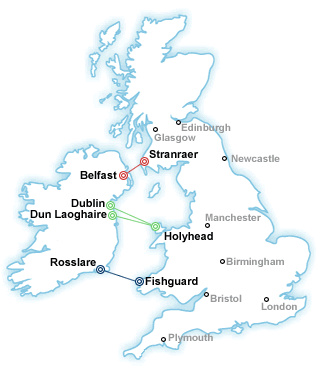 Map: "Rail and Sail" routes to/from the Republic of Ireland